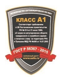 - Изделие сконструировано исходя из требований статьи 59 от 21 июля 1998 года «О мерах по регулированию гражданского и служебного оружия и патронов к нему на территории РФ».