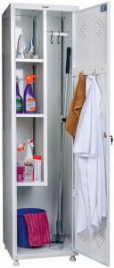 Одностворчатый металлический шкаф с распашной дверью для размещения хозяйственного и уборочного инвентаря, чистящих и дезинфицирующих средств, а также одежды обслуживающего персонала больниц, поликлиник, консультационно-диагностических и реабилитационных центров, лечебно-профилактических учреждений.