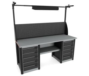 - Боковые стенки тумбочек имеют перфорированный профиль, на котором удобно размещать верстачные аксессуары.